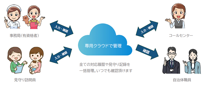 ・専用の“見守り管理システム”を開発し、対象世帯の対応履歴や見守り情報を全てデータベース化しています。自治体の担当者もリアルタイムで情報を得ることができ、問題への素早い対応や効果的な支援につなげることができます。