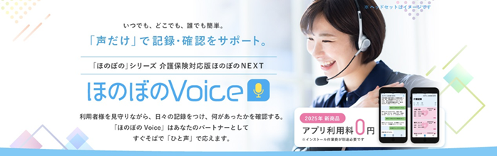 音声で記録をアシストし、「記録」を作業から「ケア」に近づけることを目指した新ソリューション。アプリを無料で提供。