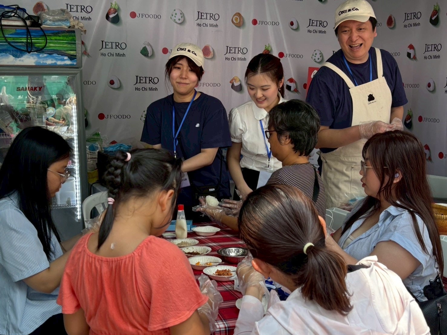 日本食品海外プロモーションセンター(JFOODO)およびジェトロ・ホーチミン事務所が主催・運営する「おにぎりワークショップ」は、日本産の米や食材(具材・海苔など)を使用し、来場者が自らおにぎり作りを体験できる人気企画です。