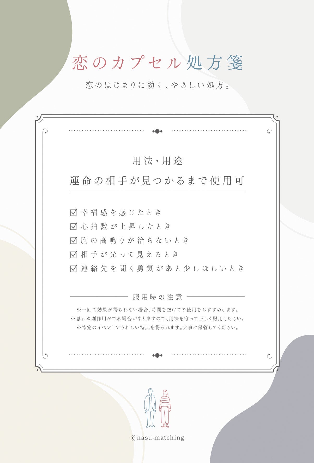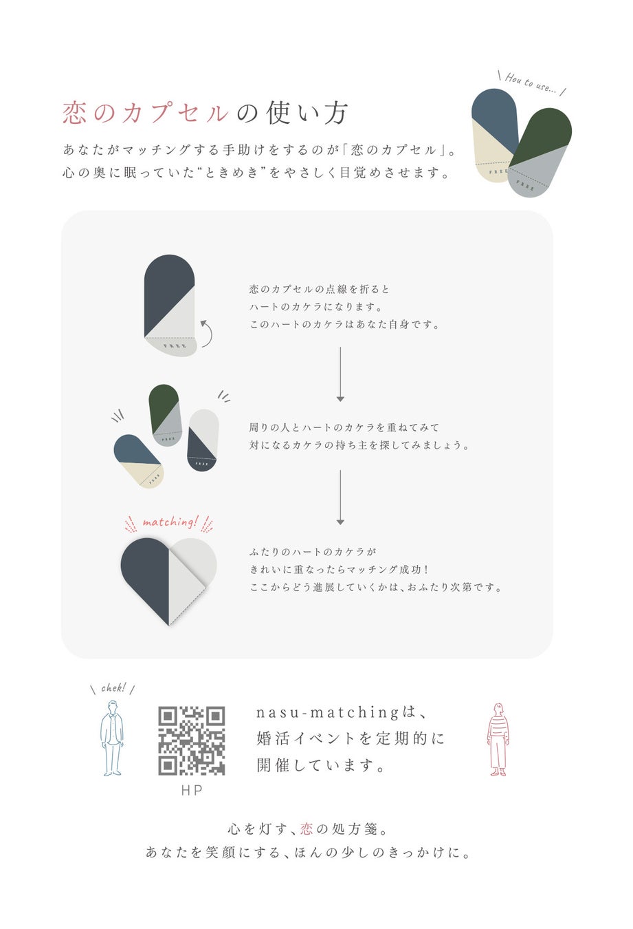 カプセル形 男女各3色 男女のカードを重ねるとハートになるデザイン