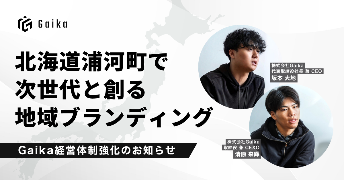 株式会社Gaika(本社:東京都港区、代表取締役社長 兼 CEO:坂本大地、以下「Gaika」)は、有限会社神馬建設(本社:北海道浦河郡浦河町、代表取締役:神馬充匡、以下「神馬建設」)との協業プロジェクト第一フェーズを完了いたしました。本プロジェクトでは、神馬建設が全国から招致した大学生・大学院生を対象に、Gaikaがマーケティング講義からコンテンツ制作・SNS発信までを一貫して企画・監修しました。あわせて、2026年度の地方共創事業の本格展開を見据え、清原来輝・上柳政太の両名が新たに取締役に就任し、経営体制を強化したことをお知らせいたします。