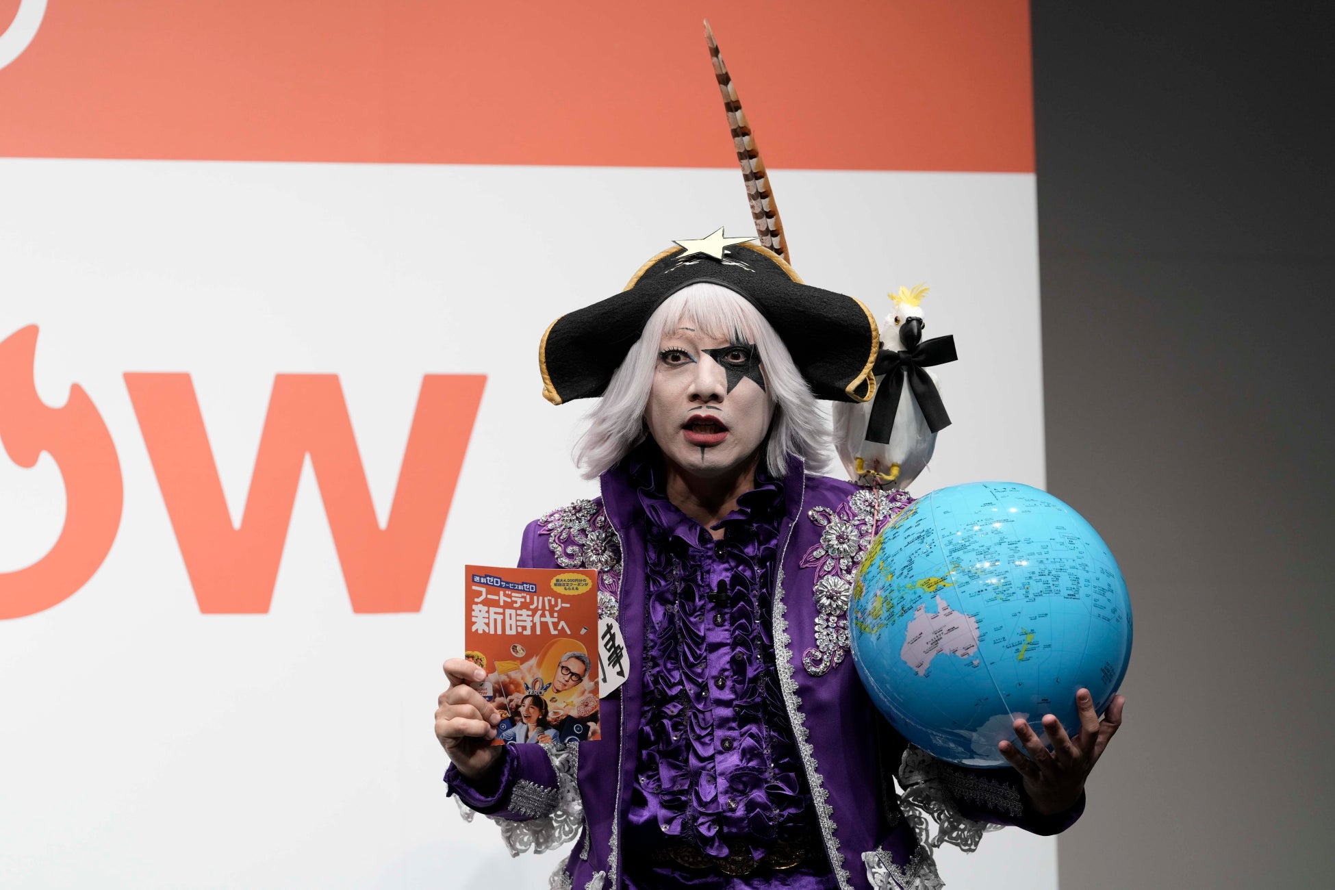 トークが盛り上がる中で突然サイレンが響き渡り、大きな地球儀を抱えたゴー☆ジャスさんが登場して“宇宙刑事”と名乗ります。お得意の「そんなバハマ」ネタで会場を盛り上げた後、「ゼロ配は地球規模の価格破壊事件だ!」と犯人を探し始めるゴー☆ジャスさん。しかし被害者がいない事件であることに気づき、「これは嬉しい事件だ!地球のみんな、安心してくれ!」と叫び、松重さん、のんさんと固く握手をして去って行きました。松重さんとのんさんは「一人で全部解決していった!」と笑顔で見送りました。