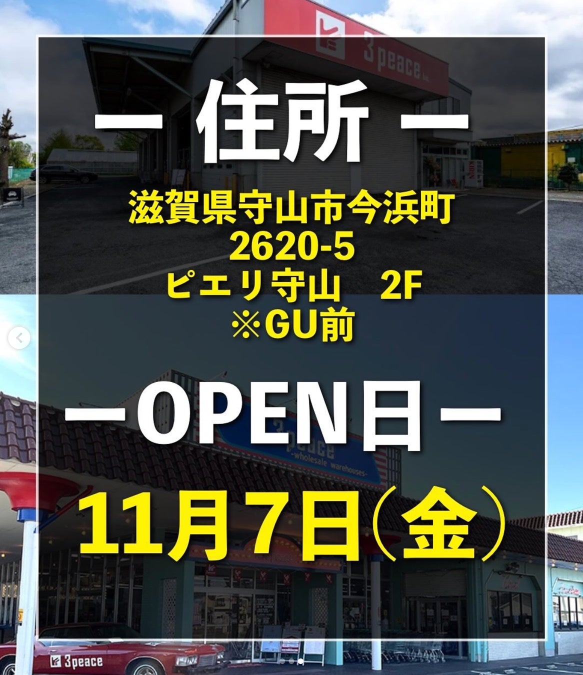 古着ブランド「3peace」(スリーピース)は2025年11月、山梨県および滋賀県に新たな倉庫型販売拠点を正式オープンいたします。