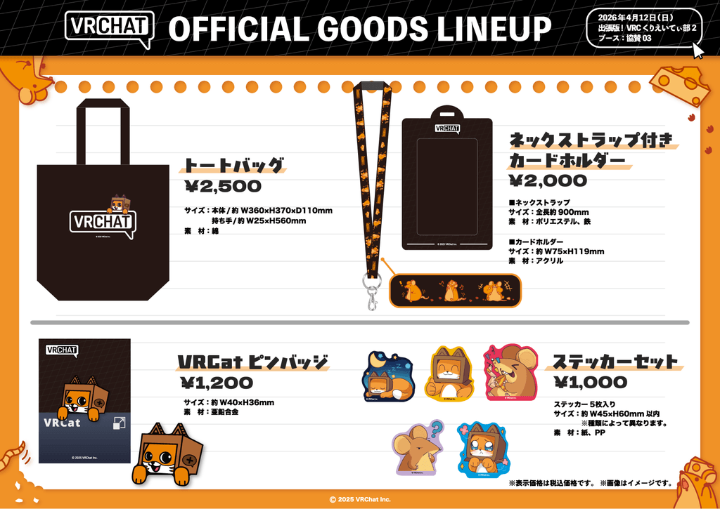 2026年4月12日(日)に池袋で開催のVRChatクリエイター向けイベントにVRChatが参加。公式グッズも販売