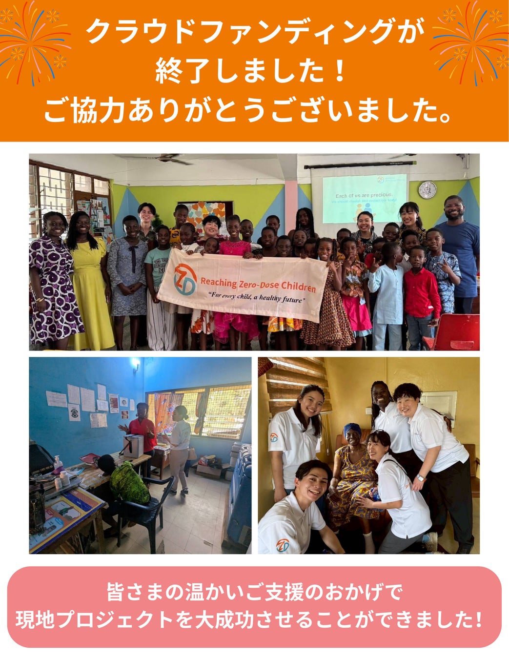 一般社団法人Reaching Zero-Dose Childrenは、このたび当団体が主催したガーナ渡航プロジェクトに関するクラウドファンディングを、2026年2月1日から2月28日まで実施し、無事終了いたしました。