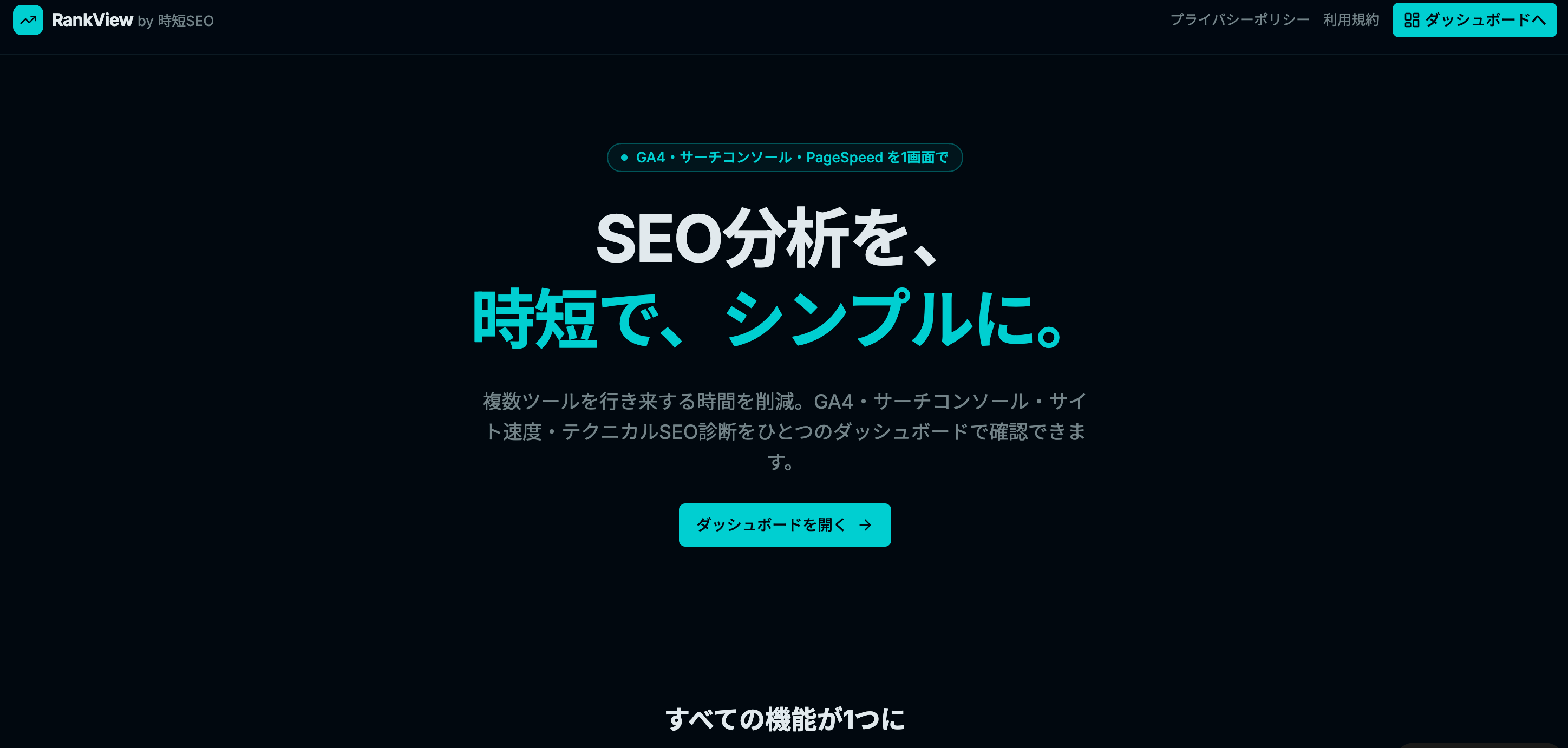 Rankviewは、サーチコンソール・GA4・サイトスピード・ヒートマップをオールインワンで1画面管理できるツールです。