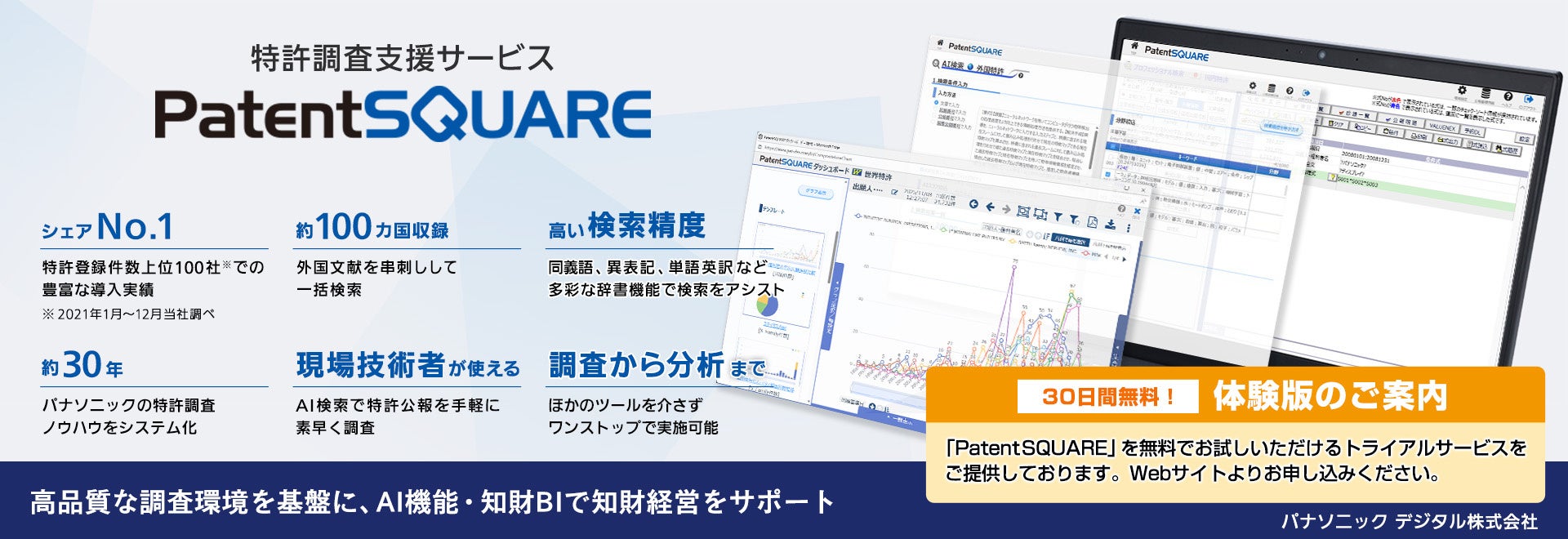 ▼特許調査支援サービス「PatentSQUARE」製品サイト