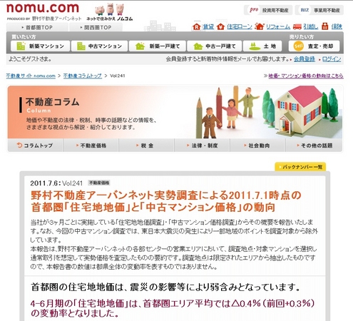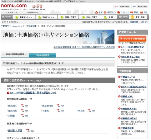 2011年7月1日時点首都圏「住宅地地価」と「中古マンション価格」の動向~住宅地地価・中古マンション価格共に弱含み~[野村不動産アーバンネット実勢調査 第91回]