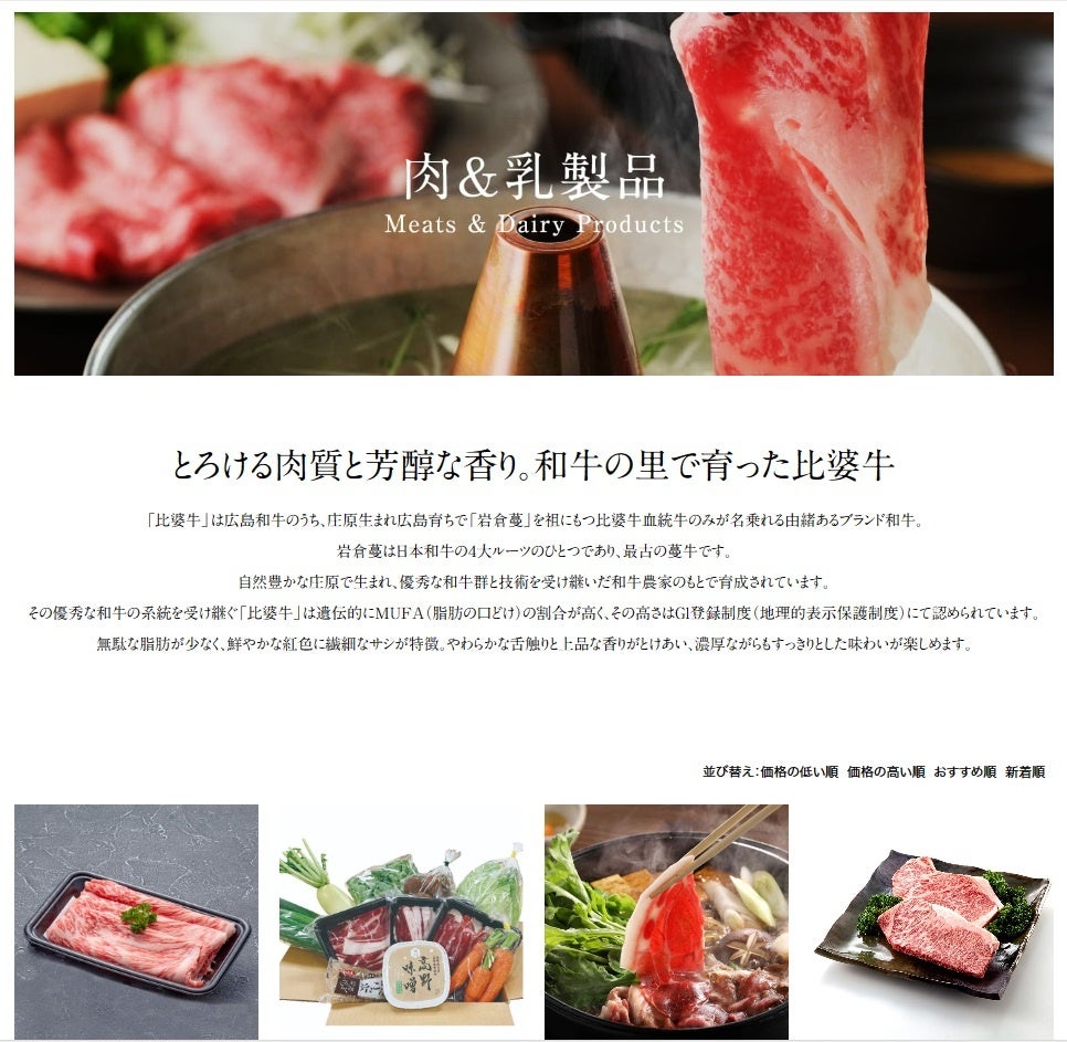 G7広島サミットで一躍注目を浴びた「比婆牛」をはじめ、庄原の逸品をラインナップ