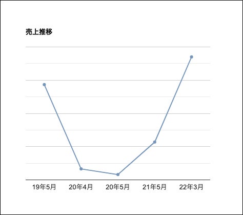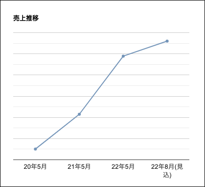 ▼コロナ前〜現在までの当社の売上推移(22年5月現在)