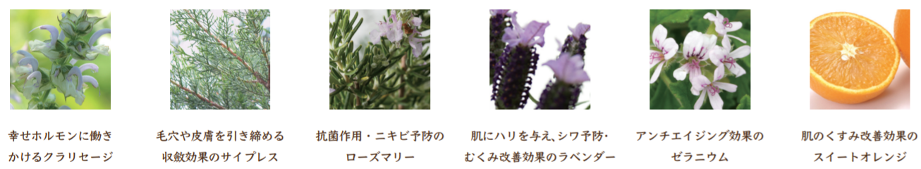 <香り>美肌効果抜群の『6種の精油』をブレンドした、リラックスできる心地よい香り