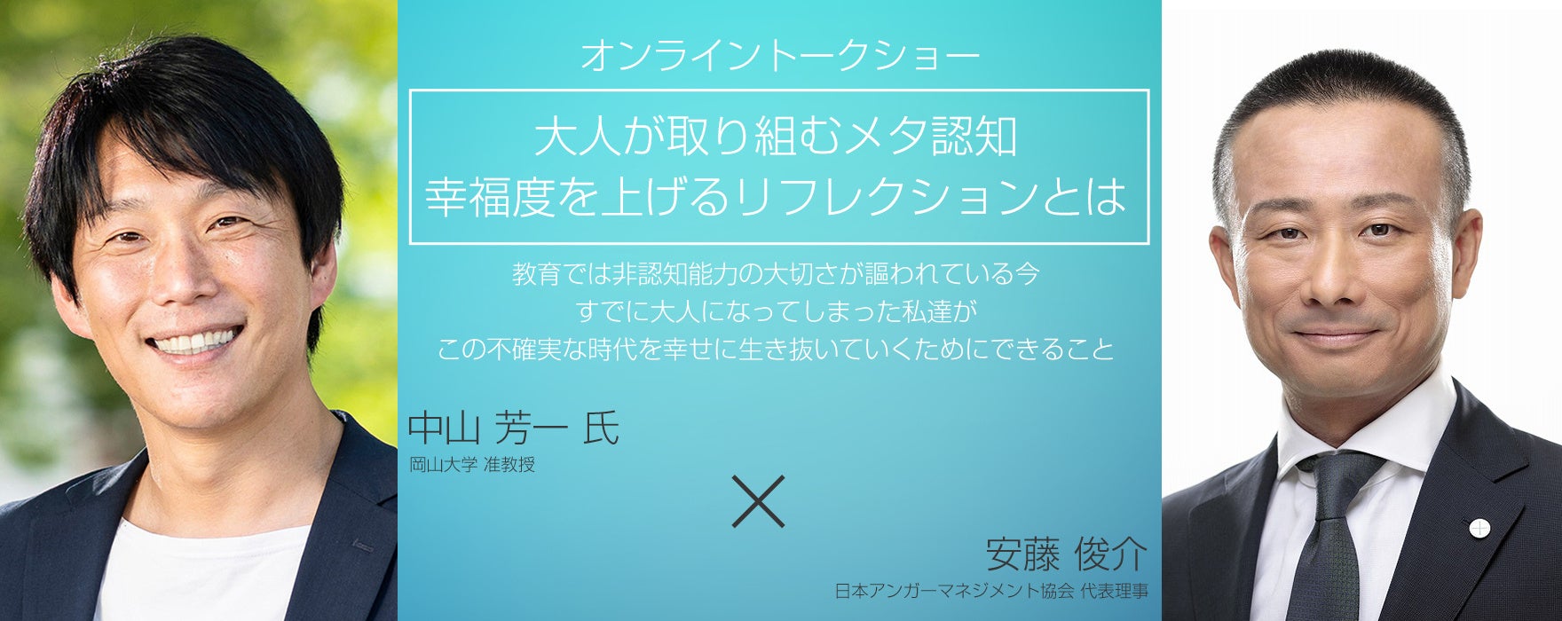 この不確実な時代を幸せに生き抜いていくためにできることをテーマに教育学者である岡山大学/准教授・中山芳一氏とアンガーマネジメントの第一人者である当会代表理事・安藤俊介が対談を行います。