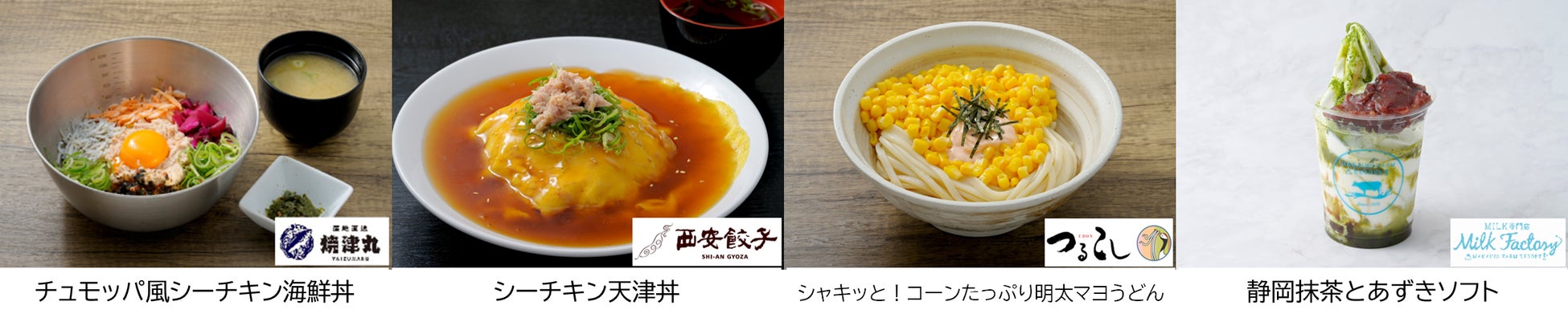 「NEOPASA 静岡」の各店舗が考案した「シーチキン」「シャキッと!コーン」「Carboff(カーボフ)」などの当社製品を使用し、各店舗の特長を生かしたおいしくて多彩な限定メニューをお届けします。