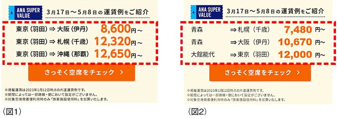 短期間でのメール制作・配信をするメール運用において、ご登録住所に準じた数多くの運賃例を制作しご案内することは難しく、羽田空港など主要な空港を発着地とした情報を掲載していました(下図1) 。