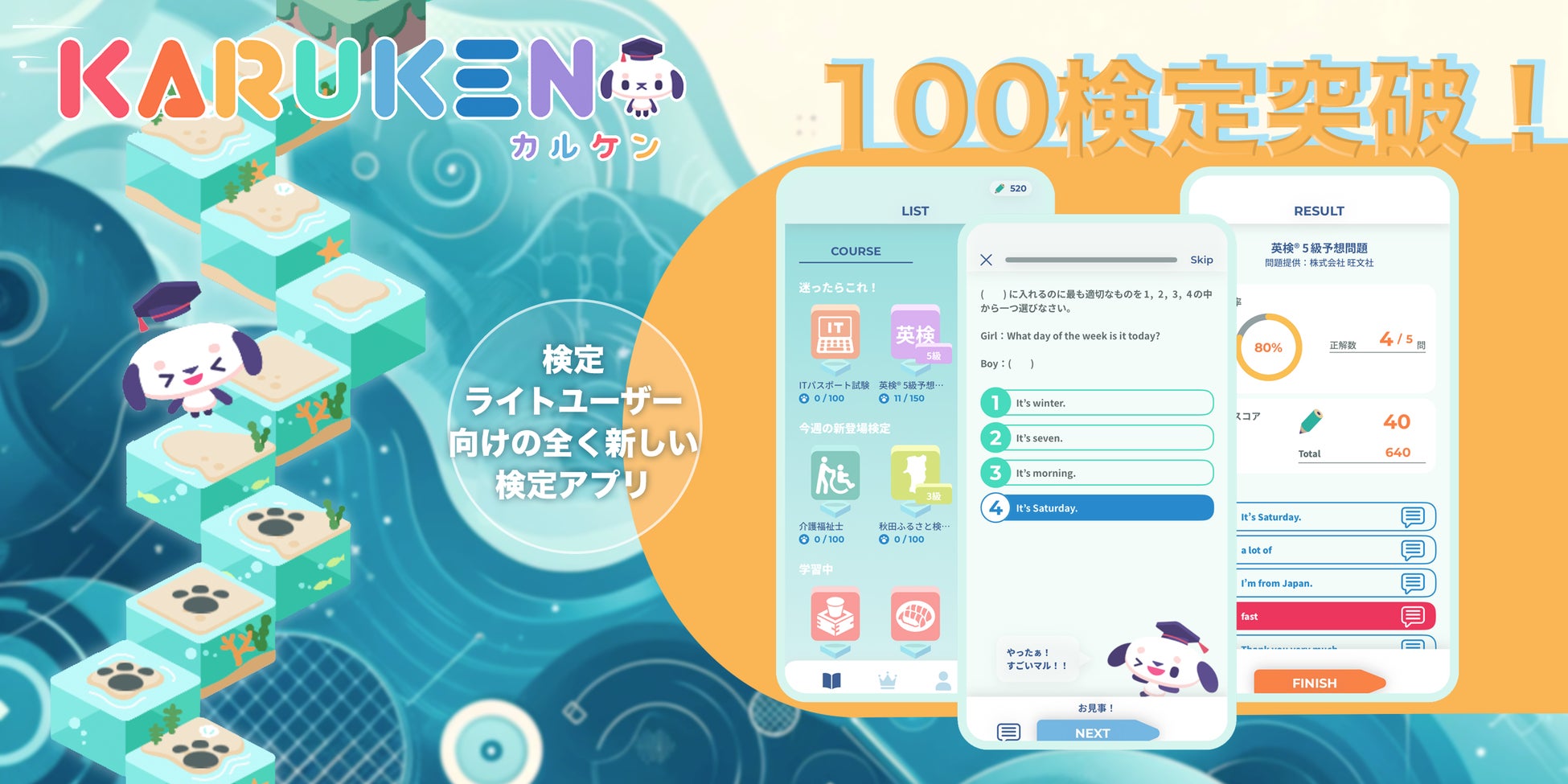 「カルケン〜検定・資格を簡単学習」アプリ、リリースからわずか3ヶ月で100を超える検定を提供!