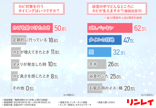 過半数の人が「カビを見つけたとき」にカビ対策を行っていたことが分かりました。