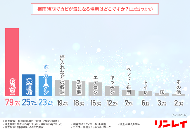 【梅雨時期のカビ事情】カビが一番気になる場所は「お風呂」が約8割!