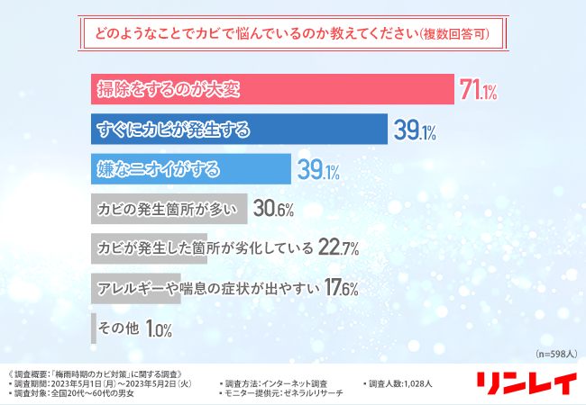- 梅雨のカビで一番の悩みは、「掃除が大変」なこと