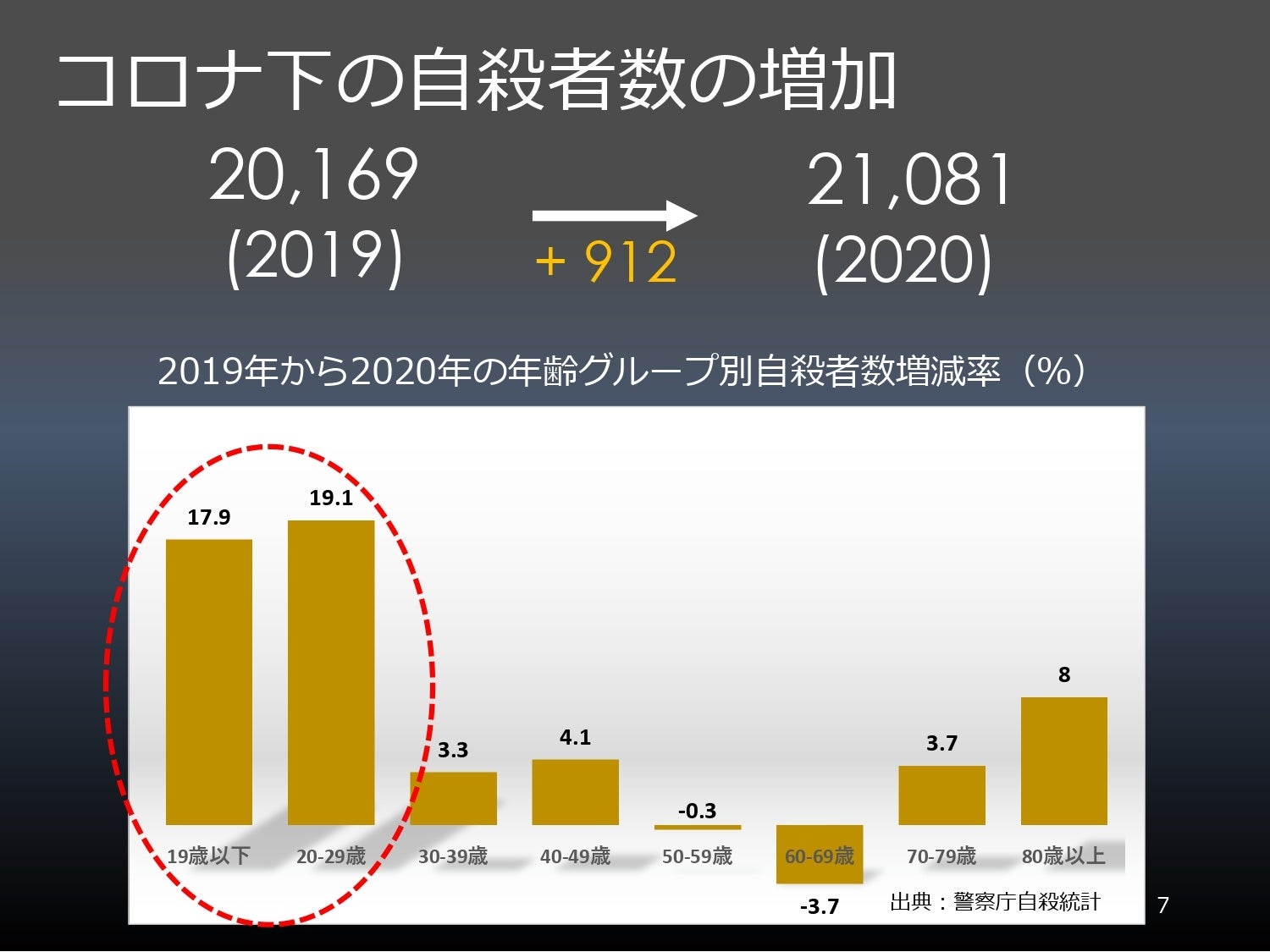 研究結果を発表いただきました。コロナ禍における若者の自殺の現状や、高齢者よりも若い世代(40歳未満)の