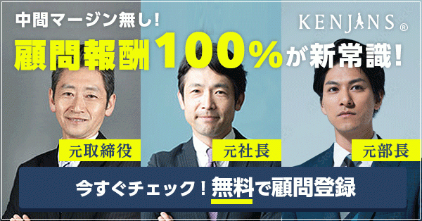 日本最大級の顧問契約マッチングサイト「KENJINS」は、顧問・プロ人材業界のフリーランス案件紹介エージェントです。KENJINSは、正社員ではない外部のプロ顧問への仕事依頼に特化し、リモートワークや月2日から週3日など、非常勤でのセールスのアドバイスや実行支援の業務委託案件をご紹介しています。