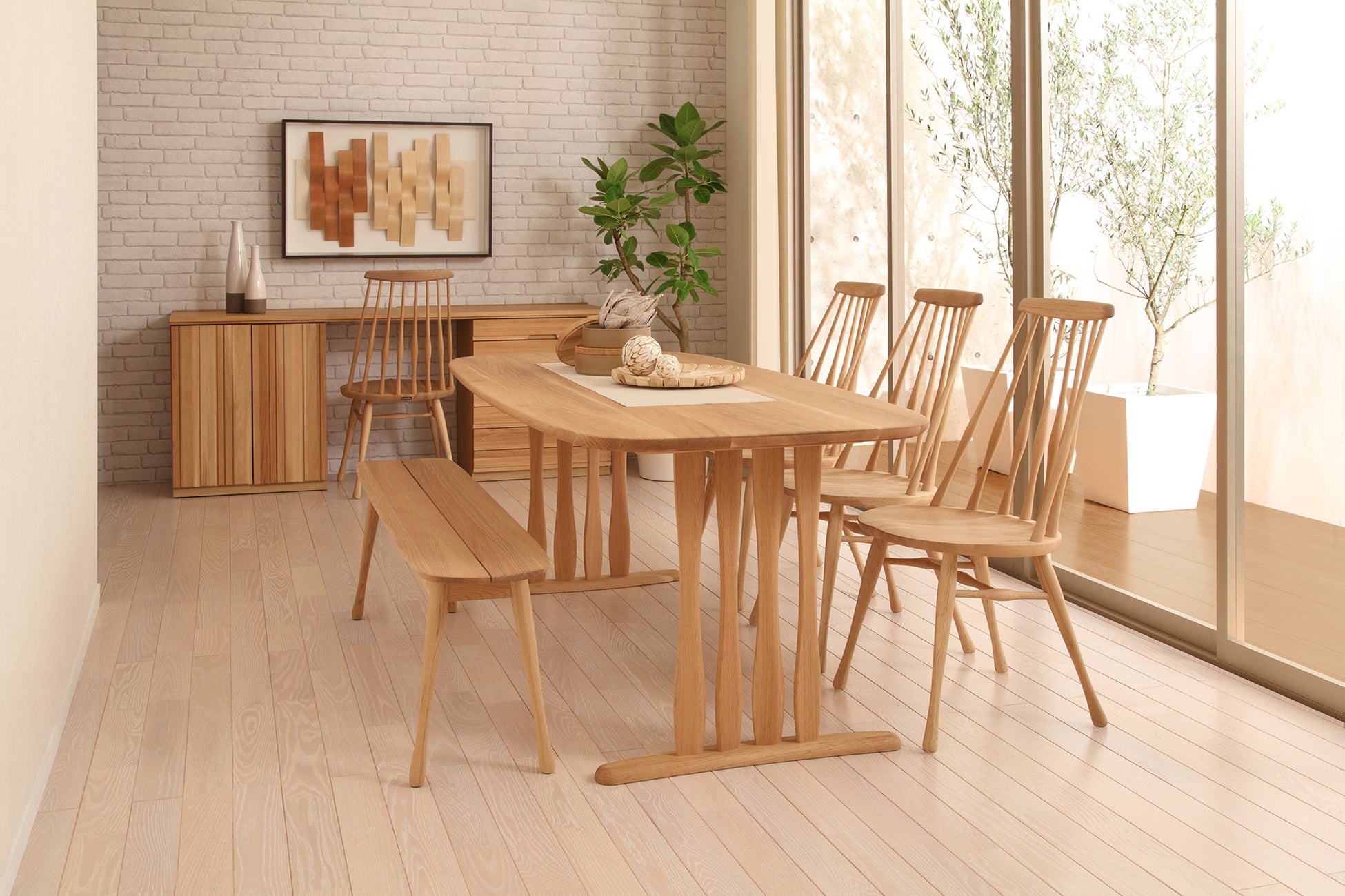 1940年に加藤正平が愛知県刈谷市で木工所を創業。木製品の加工業を営み、そこで培った技術を元に、1960年代に自社製の木製家具の販売を開始した家具メーカーです。「木とつくる幸せな暮らし」をグループミッションに掲げ「品質至上」の理念のもと、機械による高度な加工と職人の技を融合させる「ハイテク&ハイタッチ」で家具づくりに取り組んでいます。また安心・安全・環境配慮の観点から、日本家具産業振興会が定める国産家具表示認定基準を満たしています。