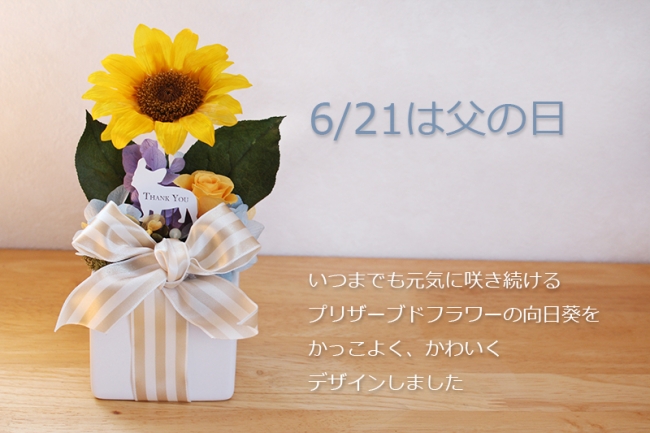 「幸せの黄色いひまわり」でお父さんにエールを贈りたい!今年の父の日は、枯れないお花を使ったヒマワリのアレンジメントで「我が家のベスト・パパ賞」をプレゼント。