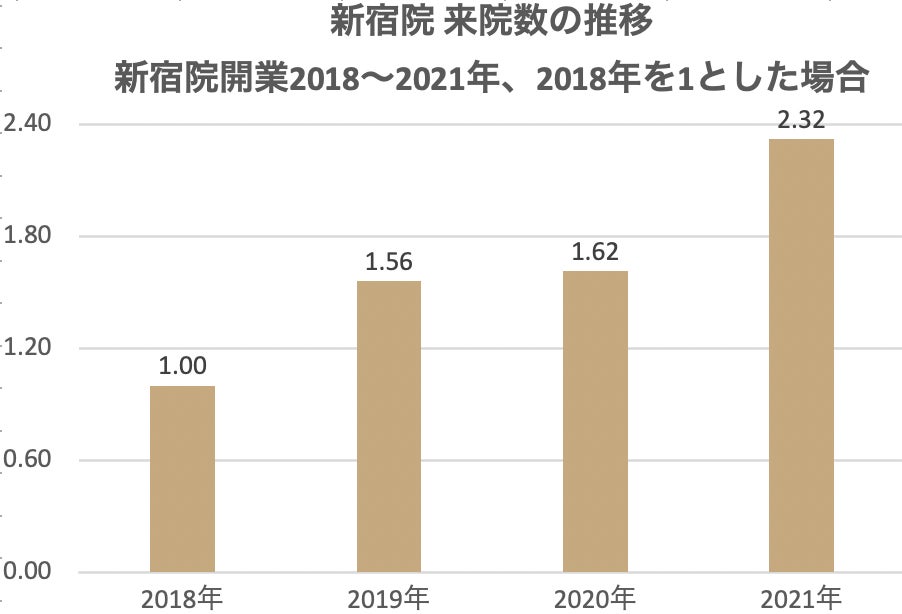天使のたまごの他院で比較したところ、新宿院の来院数の伸びは特徴的で不妊治療者からの心身ケアニーズが増加していることがわかりました。