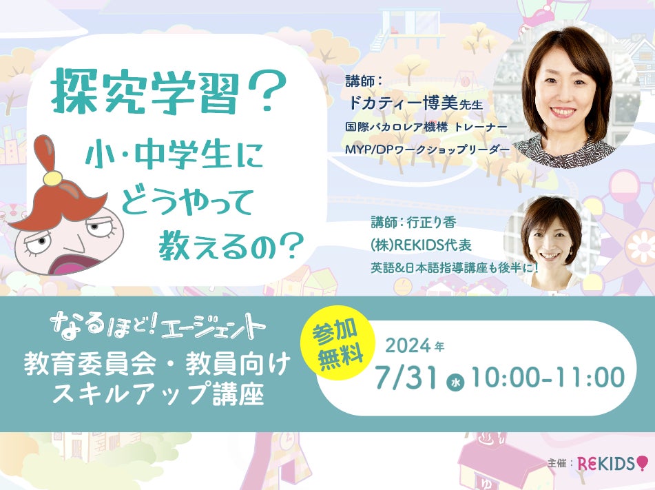 探究、英語・日本語学習のオンライン教材をお届けする株式会社REKIDS(本社 東京都、代表取締役社長 行正り香、以下REKIDS)が教育委員会、教員向けのオンライン講座を開催します。