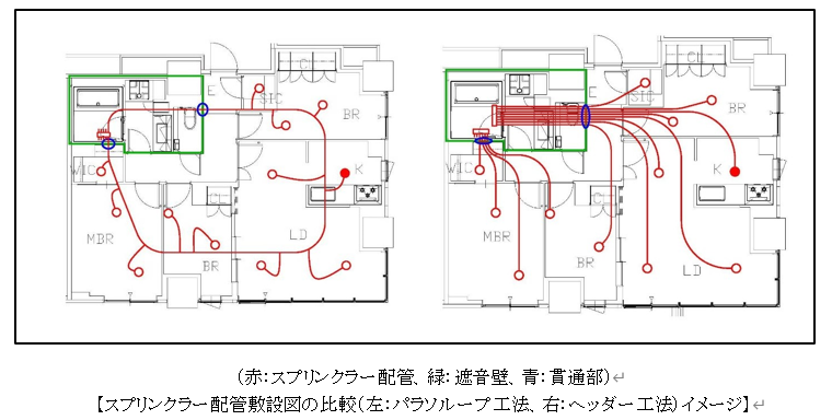 共同住宅用スプリンクラー配管における「パラソループ工法™」の開発・適用