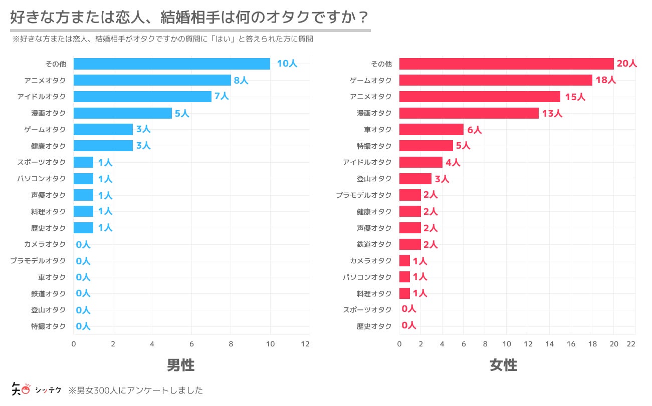 男女ともに、相手がオタク趣味を持っている事に肯定的