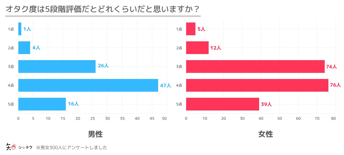 「オタク度は5段階評価だとどれくらいだと思いますか」の質問・回答を募ったところ、