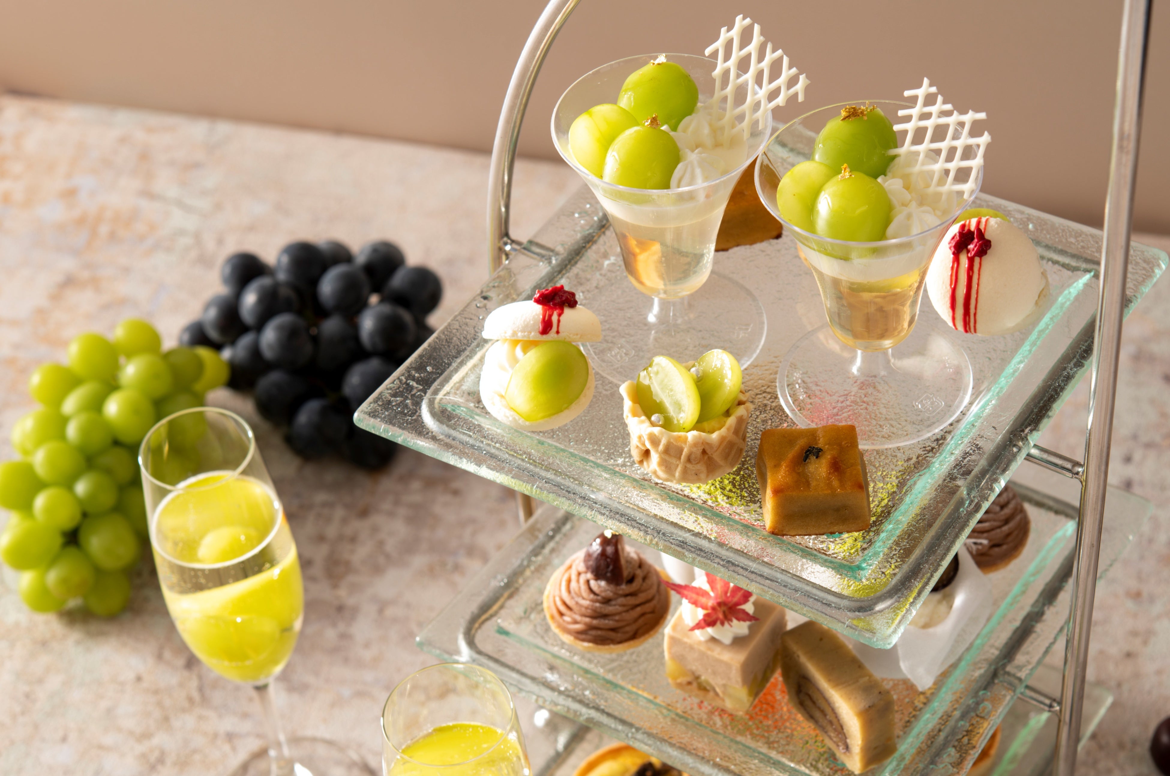 ヨコハマ グランド インターコンチネンタル ホテル(神奈川県横浜市西区みなとみらい1-1-1)では、9月12日(月)より11月30日(水)までの期間限定で、秋に旬を迎える“ぶどうの女王”シャインマスカットをふんだんに使用した「シャインマスカットとマロンのアフタヌーンティー」がスタートいたします。宝石のようなビジュアルが目を引くシャインマスカットと、秋の味覚の代表格である栗スイーツが一挙に味わえる珠玉のラインナップです。