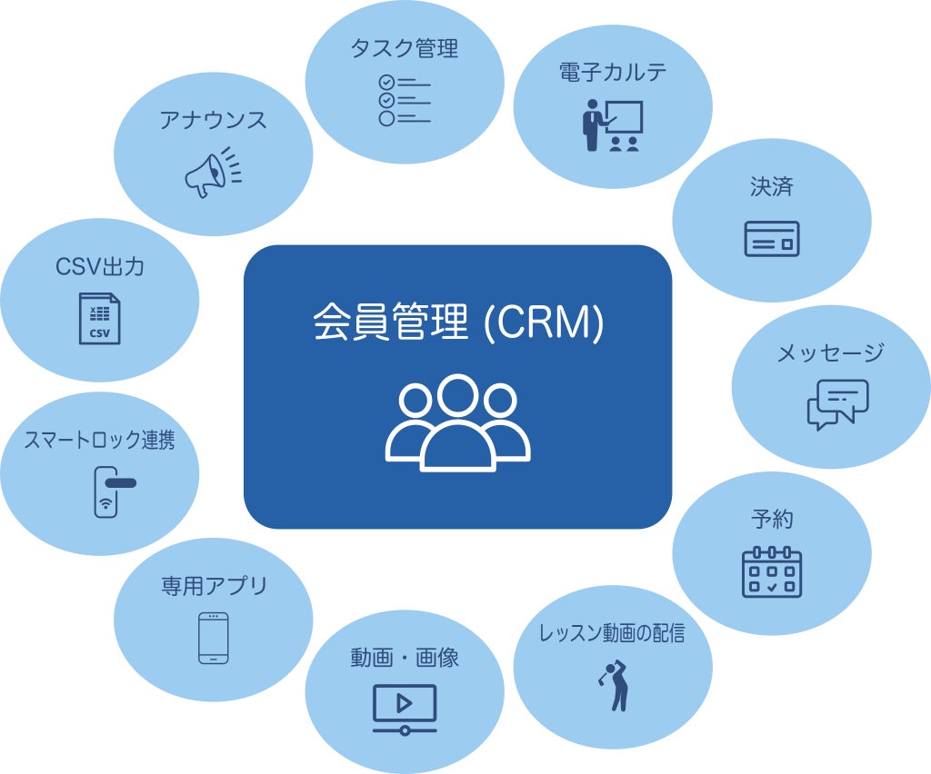 ASG School は、当社が開発・運営するゴルフスクール・練習場向けの運営管理システムです。 ゴルフ施設に最適化された会員管理 (CRM) を核に、オンライン予約・決済・電子カルテ・レッスン動画などゴルフスクール・練習場の運用管理に必要な機能がすべて揃ったオールインワンシステムです。