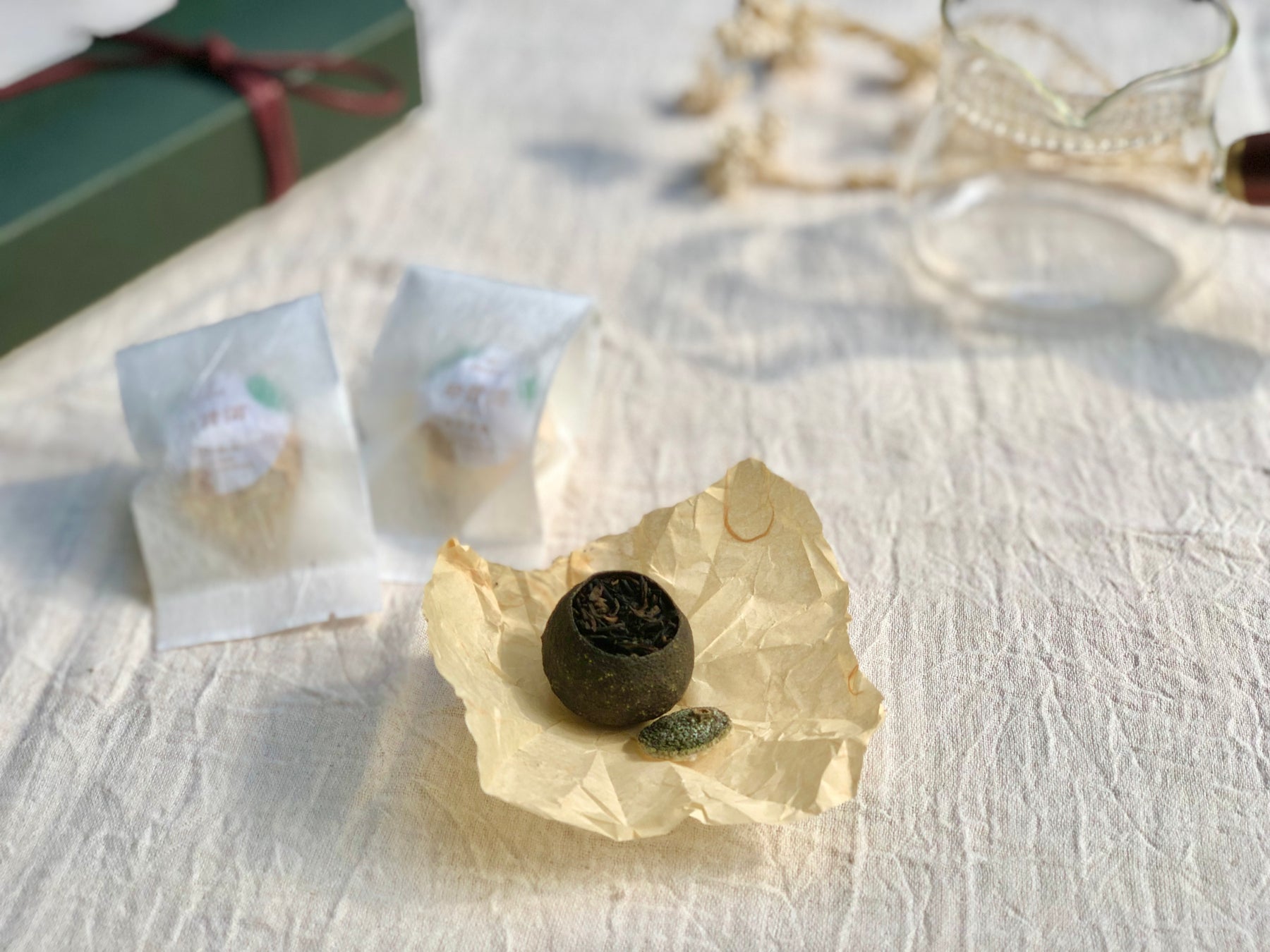 新鮮な柚子から実の部分をくり抜き、プーアル茶を詰め、さらに熱成を重ねました。柚子の爽やかな香りとブーアル茶の芳醇な香りが混ざり合い、深みのある豊かな味わいに育っていくお茶です。