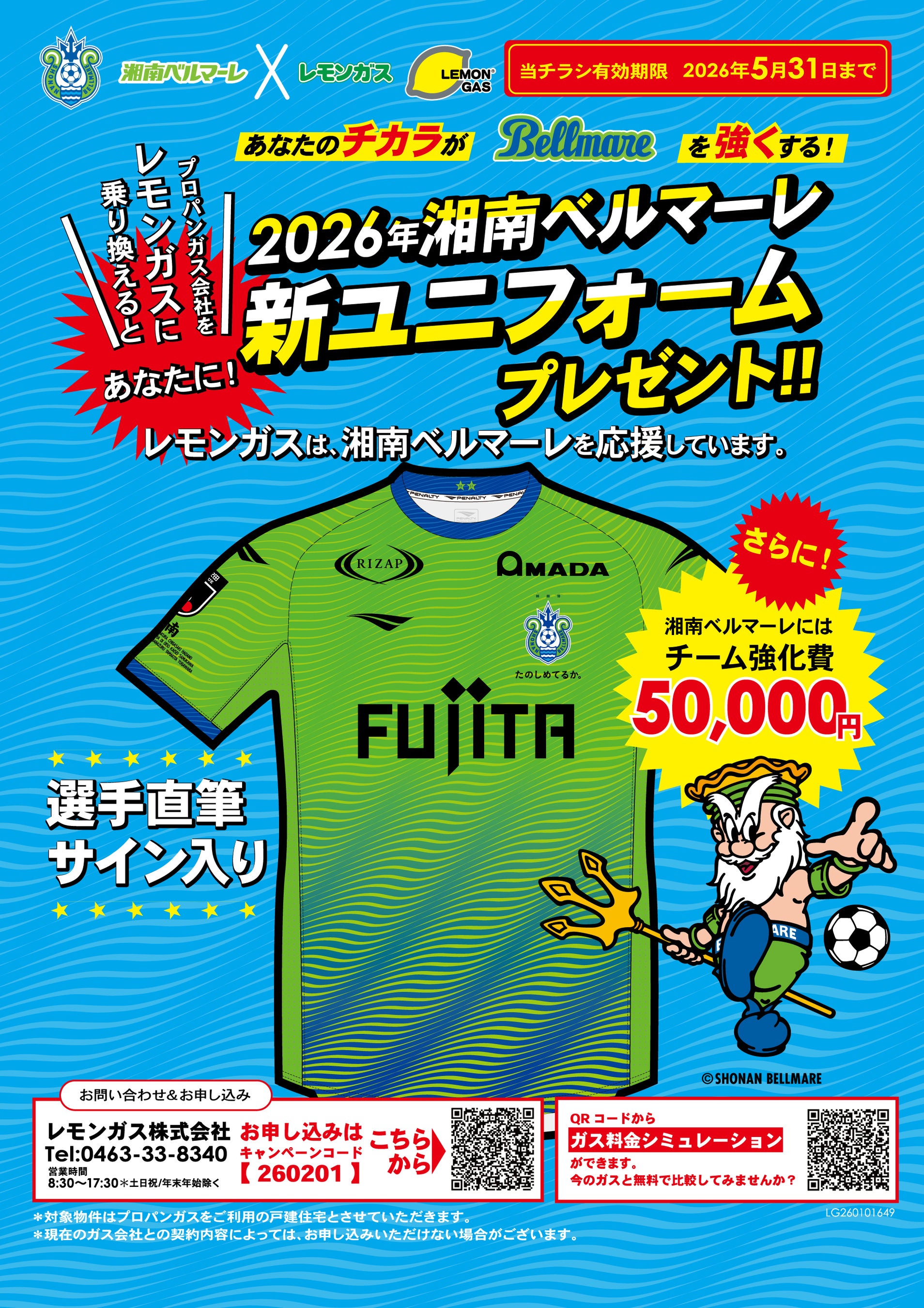 【レモンガス株式会社】湘南ベルマーレユニフォームプレゼントキャンペーン実施中!