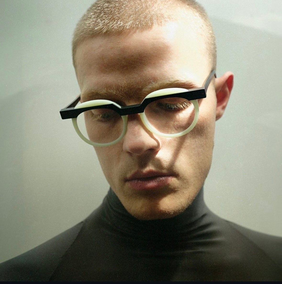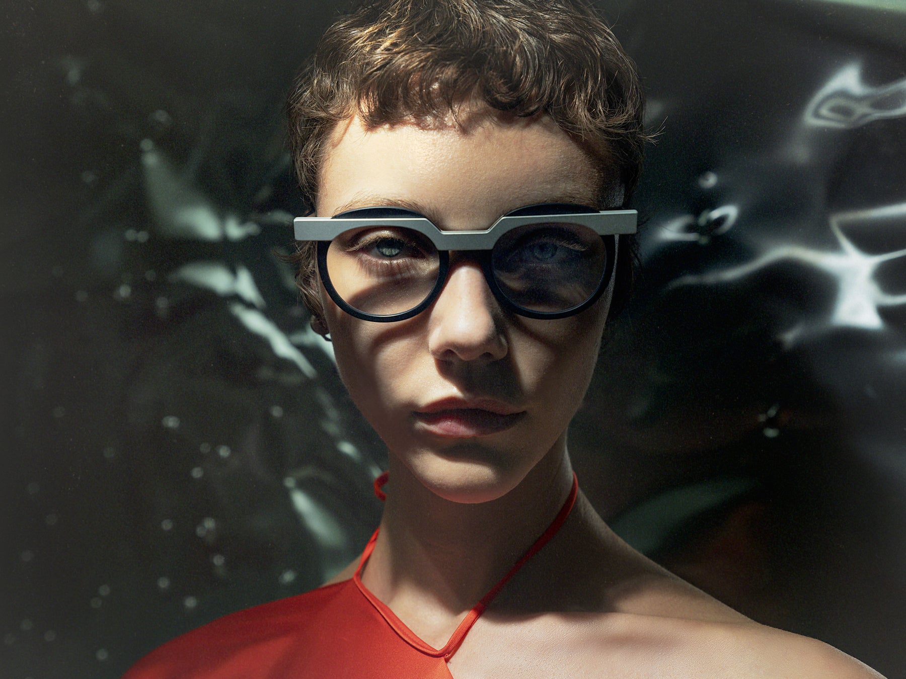 どこか無機質ながらもSF的要素を感じさせられるモードな眼鏡となっており、Veronika氏らしい美しいカラーリングと幾何学的デザインをご覧いただけます。