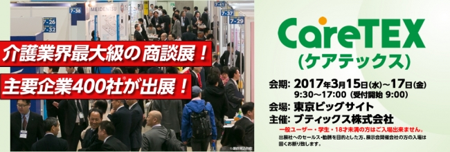 介護業界 日本最大級の商談展示会「第3回CareTEX2017」3月15日(水)より東京ビッグサイトで開催!