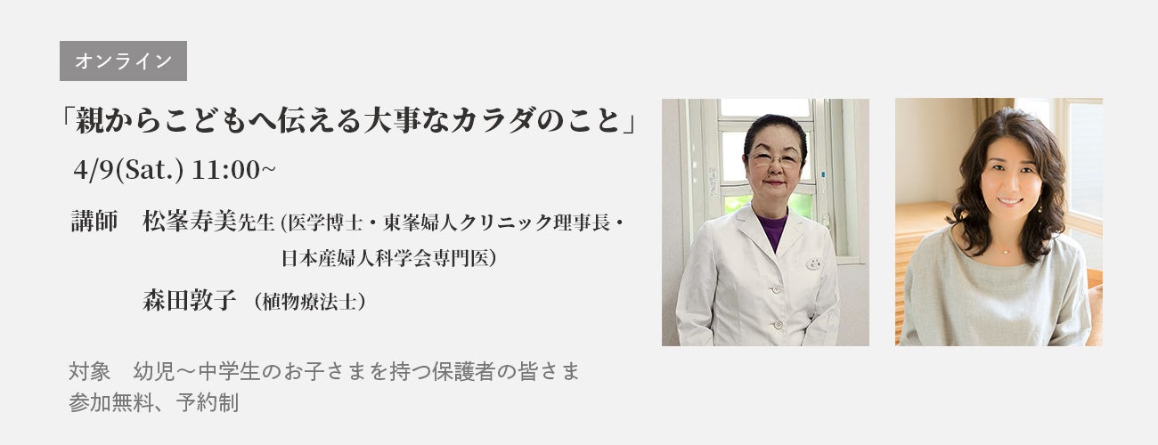 自分自身が教わってこなかった親世代にも大切な、知ることから始まる性教育。身近に分かりやすく書かれた性についての本や、幼少期から知っておきたいデリケートゾーンケアのアイテムなどをラインナップするほか、親と子それぞれに向けた無料セミナーも開催いたします。