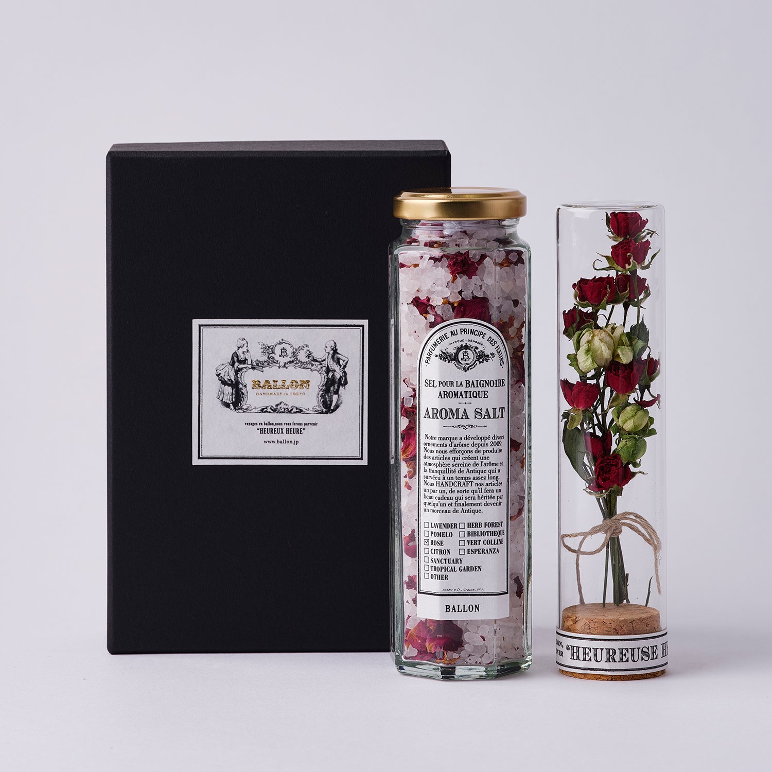 アロマバスソルト ローズ+フラワーチューブ ローズのギフトセット