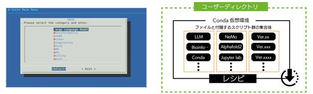 またG-Suiteでは、Ubuntu 24.04に対応し、開発環境はminiforgeをベースとしています。各世代のGPUに最適化してビルドしたソフトウェア群に加え、OSネイティブ環境+コンテナ環境をハイブリッドにサポートするアプリケーションリソースマネージメントツールです。ユーザーは様々なアプリケーション実行環境を構築することが可能であり、レシピは全てフリーでアクセスできます。