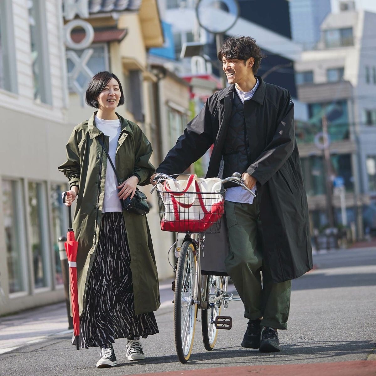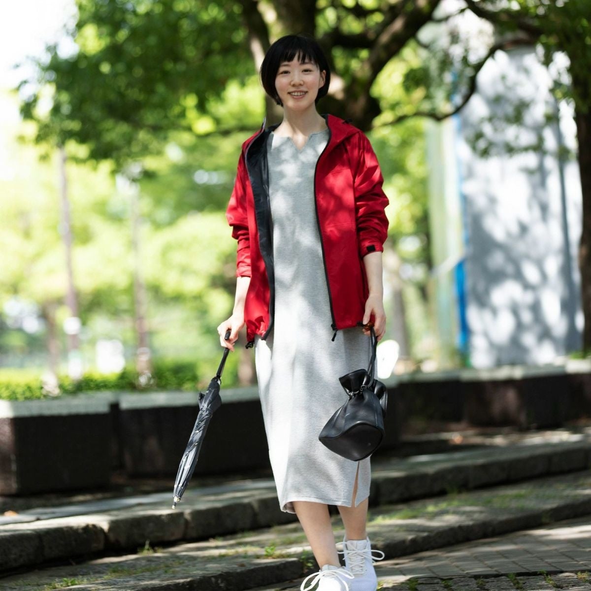 どうしても気分がうつむきがちな雨の日に、外の世界へ背中をそっと押してくれる。そのまま雨上がりの青空の下でも、そのまま着ていたいと思える。どんな天気でも気持ちよく着られて、長く愛せる。