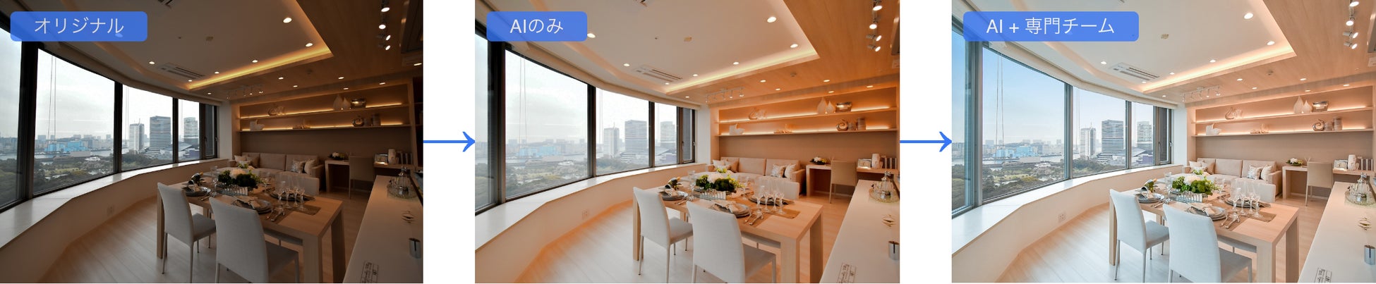 実際、今回のリリースに先駆けて弊社内ではAIエンジンを活用して物件写真加工を行なっており、改善を重ねて参りましたが、自社内では既に画像編集加工に関わる作業時間の約60%削減を実現。またリリースに先駆けて導入いただいたクライアント様に置いても、導入直後に約50%の業務時間削減を実現しております。