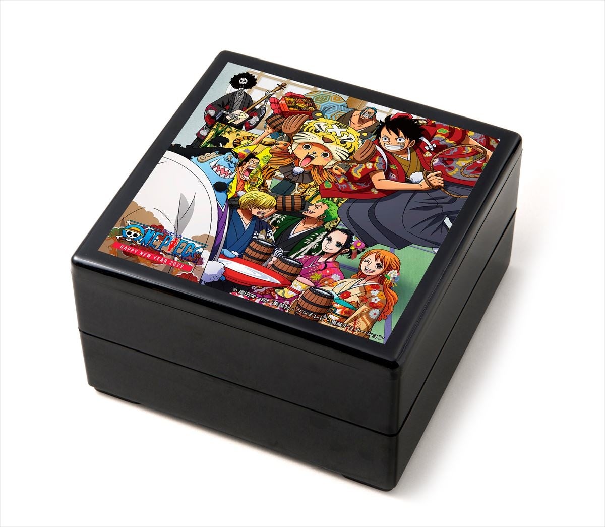 和装が華やかな麦わら一味のお正月! 今年だけのオリジナルイラスト入り重箱です。(19.8×19.8cm 素材:ABS樹脂 日本製)