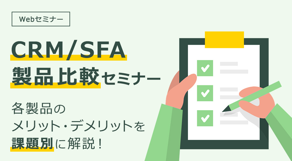 今回公開したホワイトペーパーのテーマである「SFA」をテーマにしたWebセミナー「【CRM/SFA】製品比較セミナー各製品のメリット・デメリットを課題別に解説!」を2024年3月13日に開催いたします。
