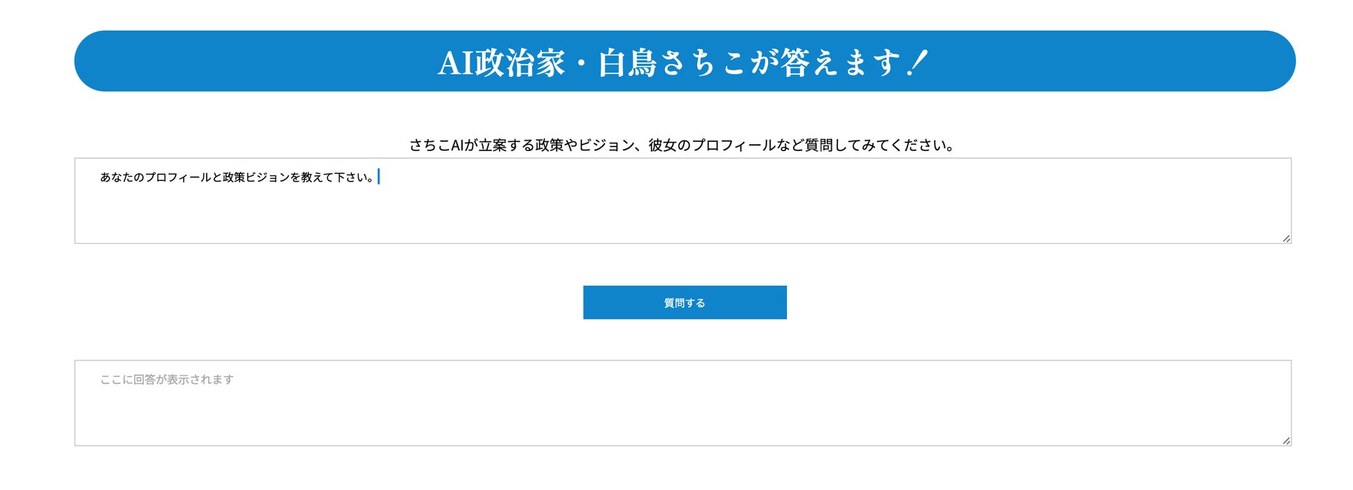 「白鳥さちこAI」は、最新の大規模言語モデル(LLM)を駆使して、有権者からの質問に対して正確かつ迅速に回答します。このシステムは、選挙情報のアクセスを改善し、有権者と候補者との間のコミュニケーションを促進することを目的としています。