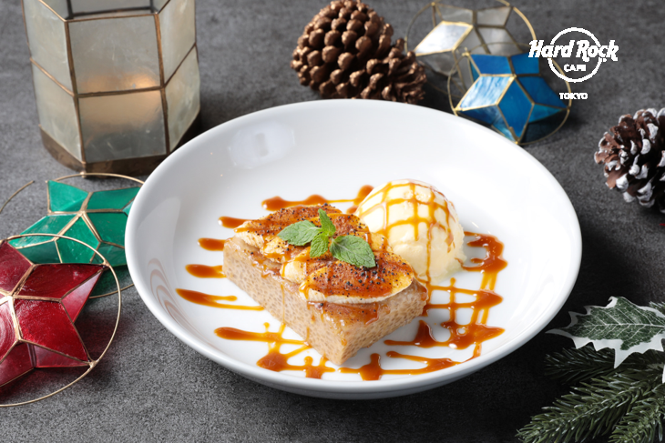 フィリピンではお祝い事などで食べられるお餅のデザート。トッピングにはバナナとバニラアイスを使い、ハードロックカフェ風にアレンジしました。塩キャラメルソースと一緒にお召し上がり下さい。