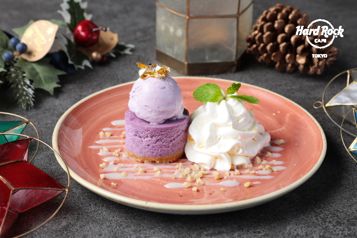 フィリピンで大人気のデザート「ビビンカ」をトニーローマ風にアレンジ。ウベ(紫芋)とピスタチオのアイスを添えて、ローストココナッツ、マンゴーソースで仕上げたフィリピンを代表するクリスマスのデザートです。