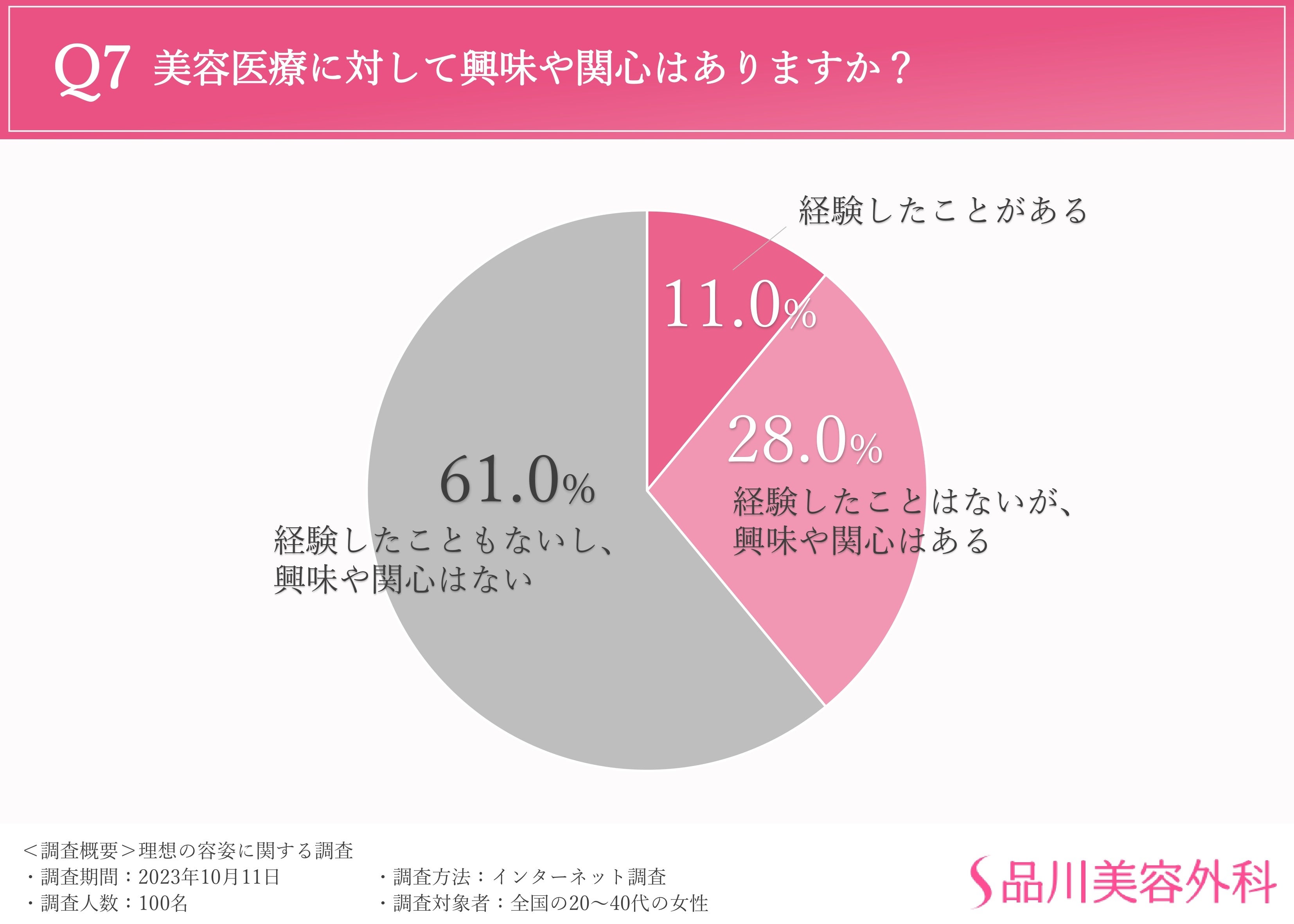 また、「経験したことがある(11%)」という回答から、何らかの美容医療施術をすでに受けたことがある方も一定数いることがわかりました。