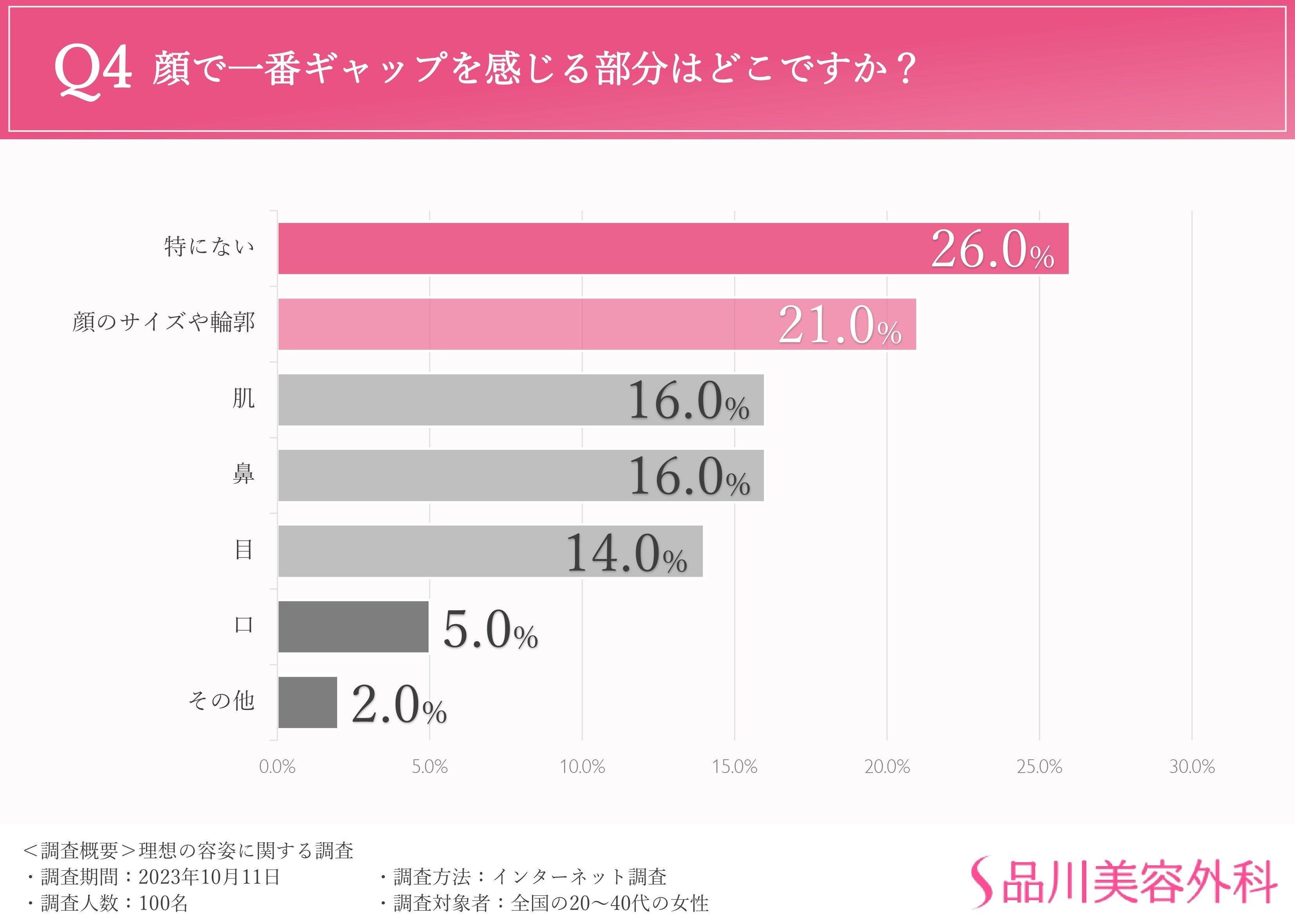 その他の結果は、「鼻(16%)」「肌(16%)」という回答が続きました。