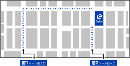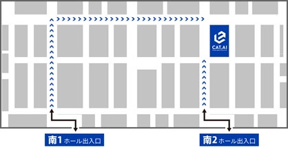 展示会期間中トゥモロー・ネットブース(小間番号9 – 32、ブース位置下記参照)では、導入事例の解説、操作デモンストレーションのご紹介、個別相談会などを行い「CAT. AI」の魅力を広くご紹介します。
